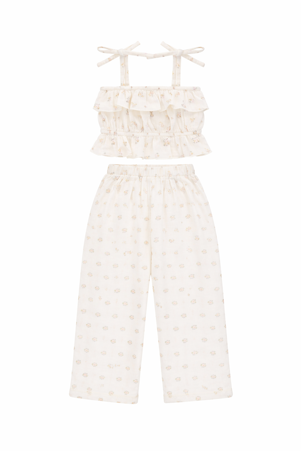 smocked tank with adjustable straps with wide legged pants