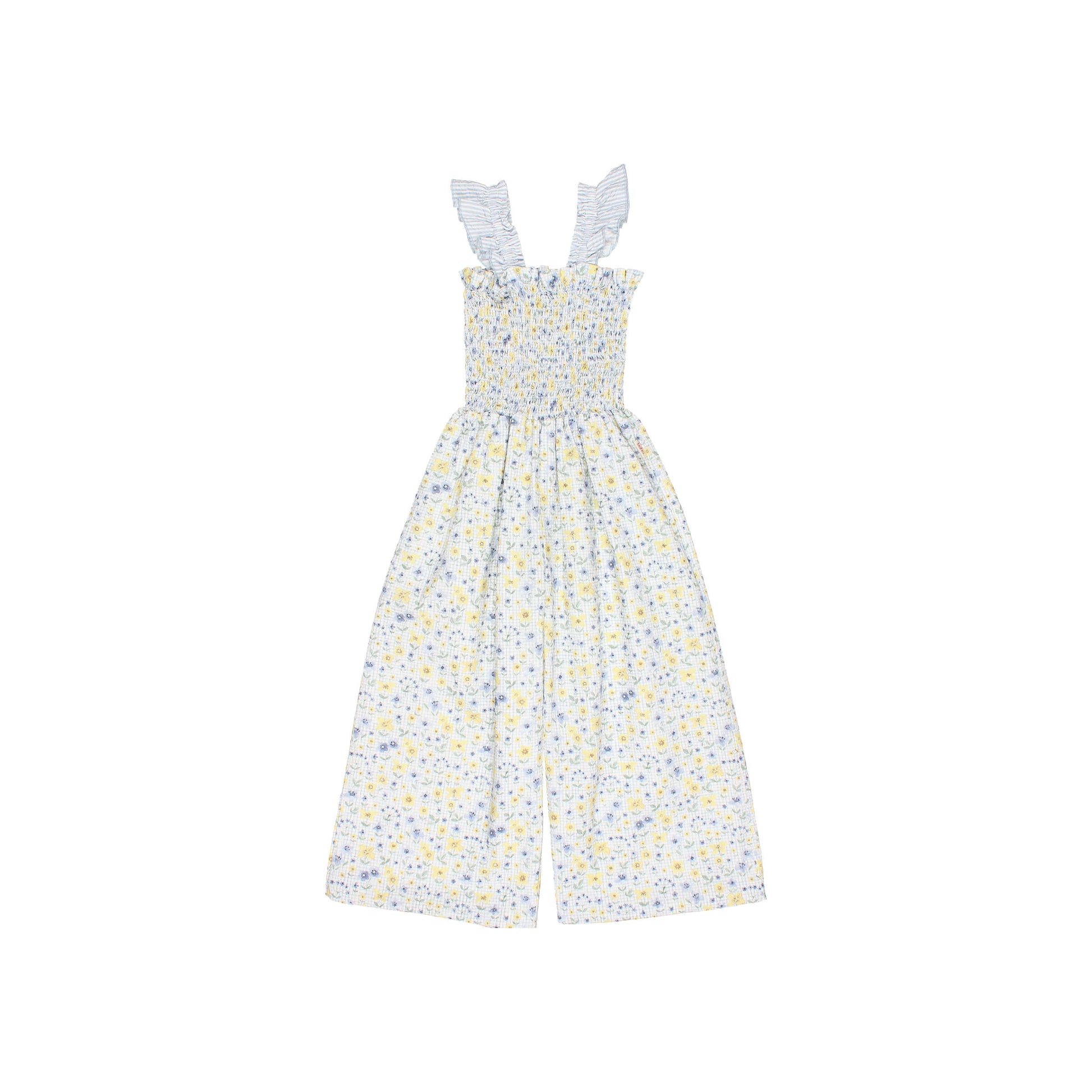 100% cotton jumpsuit with smocked top